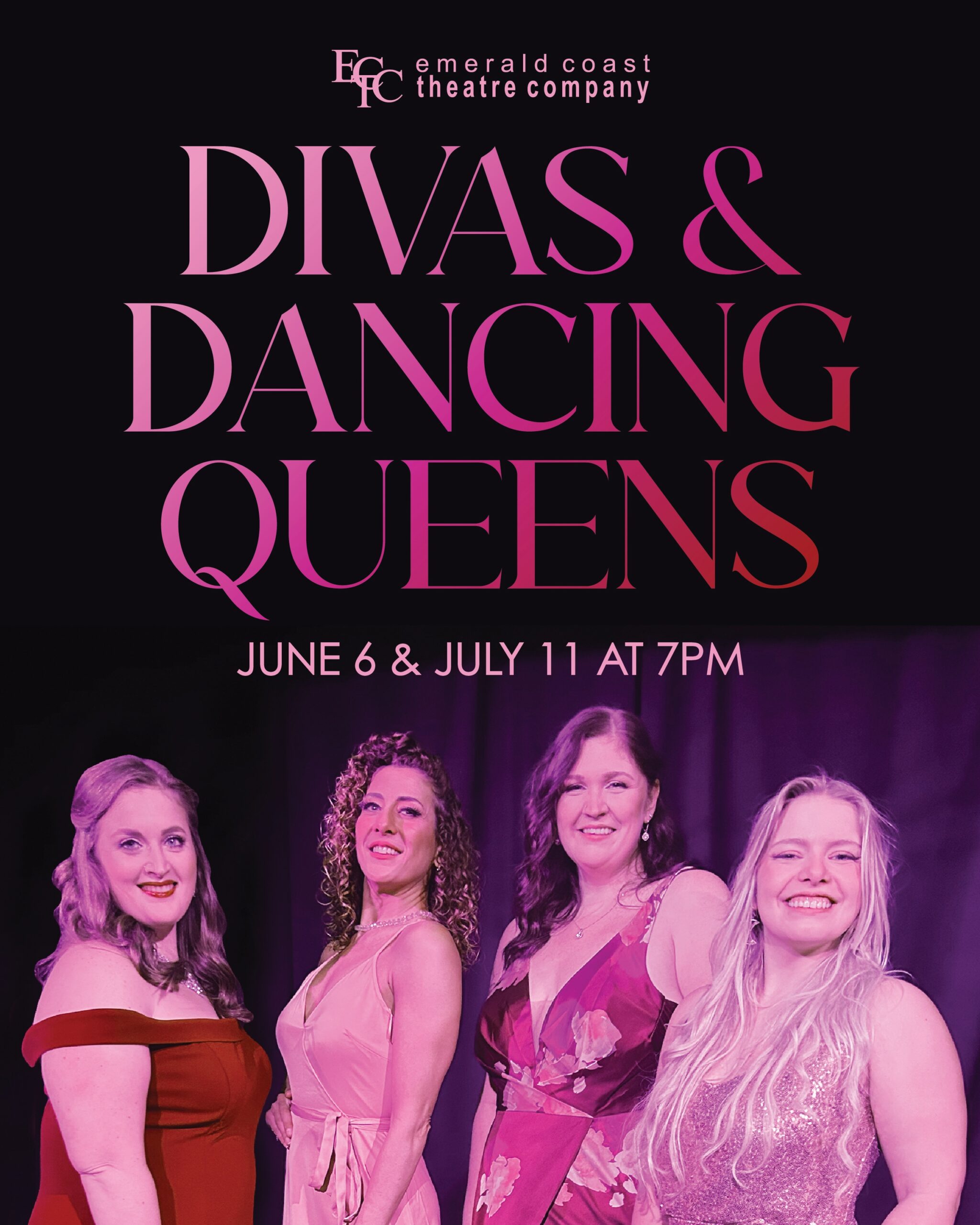 Miramar Beach, Fla. — Emerald Coast Theatre Company (ECTC) is proud to present Divas & Dancing Queens Friday, June 6 and Friday, July 11, 2025, at 7 pm. Enjoy a night of sizzling entertainment at ECTC’s Divas and Dancing Queens Revue, where our talented performers dazzle you with the carefree spirit of timeless hits. This sparkling showcase features classics like “Can’t Take My Eyes Off of You,” “The Girls of Summer,” and ‘Dancing Queen”. Don’t miss this two night only summertime celebration event!
