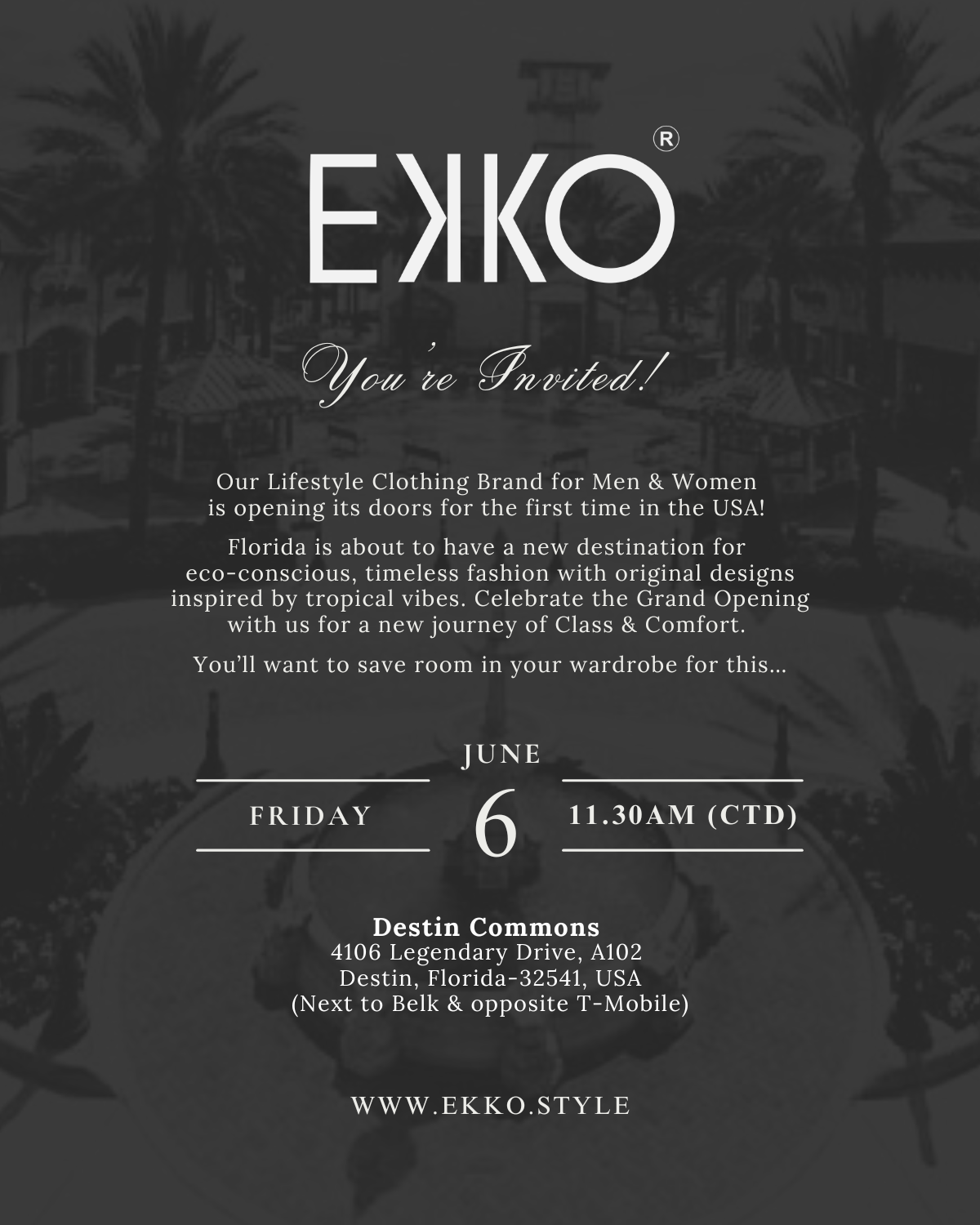 DESTIN, Fla. – Lifestyle fashion brand EKKO is set to open its first U.S. retail location at the Destin Commons, located at 4100 Legendary Drive, on Friday, June 6 at 11:30 a.m. The brand will simultaneously launch their online shopping platform www.ekko.style.