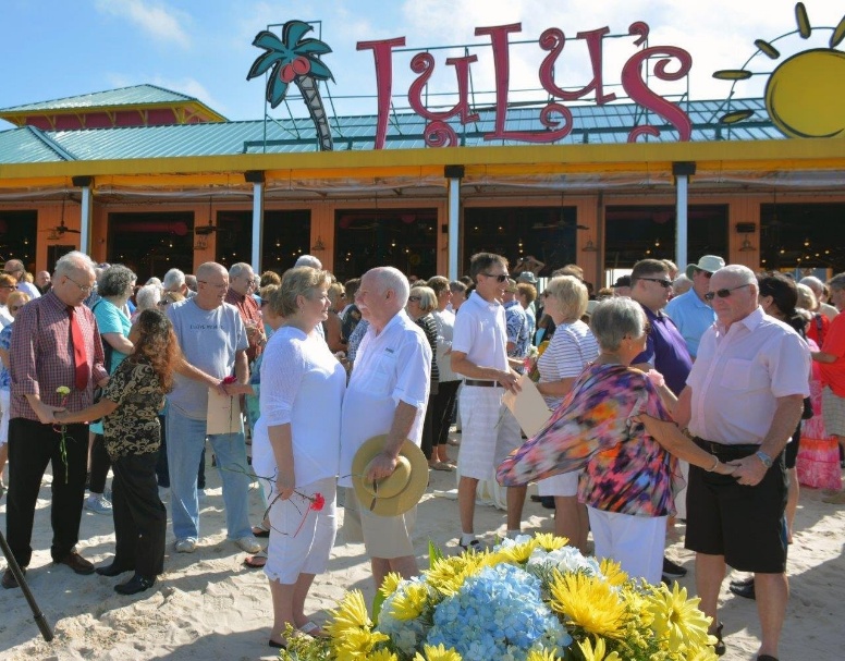 The ceremony begins at 2 pm out on LuLu’s sandy beach overlooking the scenic Choctawhatchee Bay. Couples are encouraged to early pre-register on-line at www.LulusFunFoodMusic.com up until February 9. Registration at LuLu’s can take place anytime. On the day of vow renewals, February 14, registration sign-in begins at 11 am.