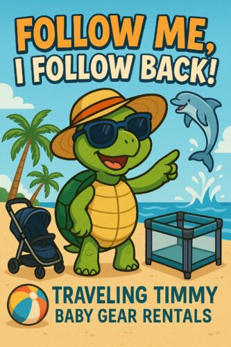 Traveling Timmy is our family's personal mascot—a silly little turtle who tags along on all our adventures! 🐢 He’s become part of our journey as a traveling family and now represents our mission to help other families travel lighter and stress-free. While Timmy isn’t included with rentals, he’s the heart behind our brand and the inspiration for everything we do.
