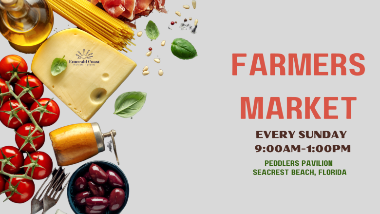 The Peddlers Pavilion Farmers Market, open-aired farmers market located in beautiful Seacrest Beach, Florida is open Sundays from 9am – 1pm. Shoppers are invited to stroll the market while browsing local farmers, makers, and bakers.